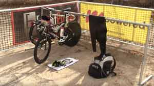 - Je nach gewünschter Wechselgeschwindigkeit ist es von entscheidender Bedeutung, hier die Abläufe und Plätze zu 100 % zu kennen und diese Abläufe ritualisiert zu haben. Teilweise habe ich Dinge mit Kreppband „geklebt“, damit sich die Brille und Verschlüsse weder bewegen noch den Platz am Rad überhaupt verlassen und sofort mit der richtigen Hand gegriffen werden können, währen der Neoprenanzug gleichzeitig mit den Füßen abgestreift werden kann.