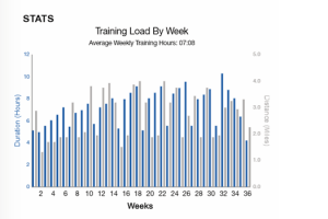 Ich habe mit dem Plan: 36 Wochen – Schnelle Zeiten sind ein Muss (7-11 h Training) auf eine olympische Distanz trainiert.