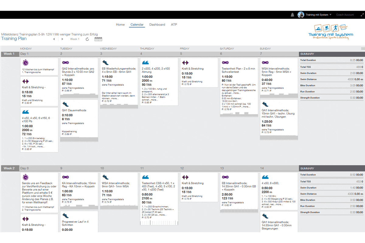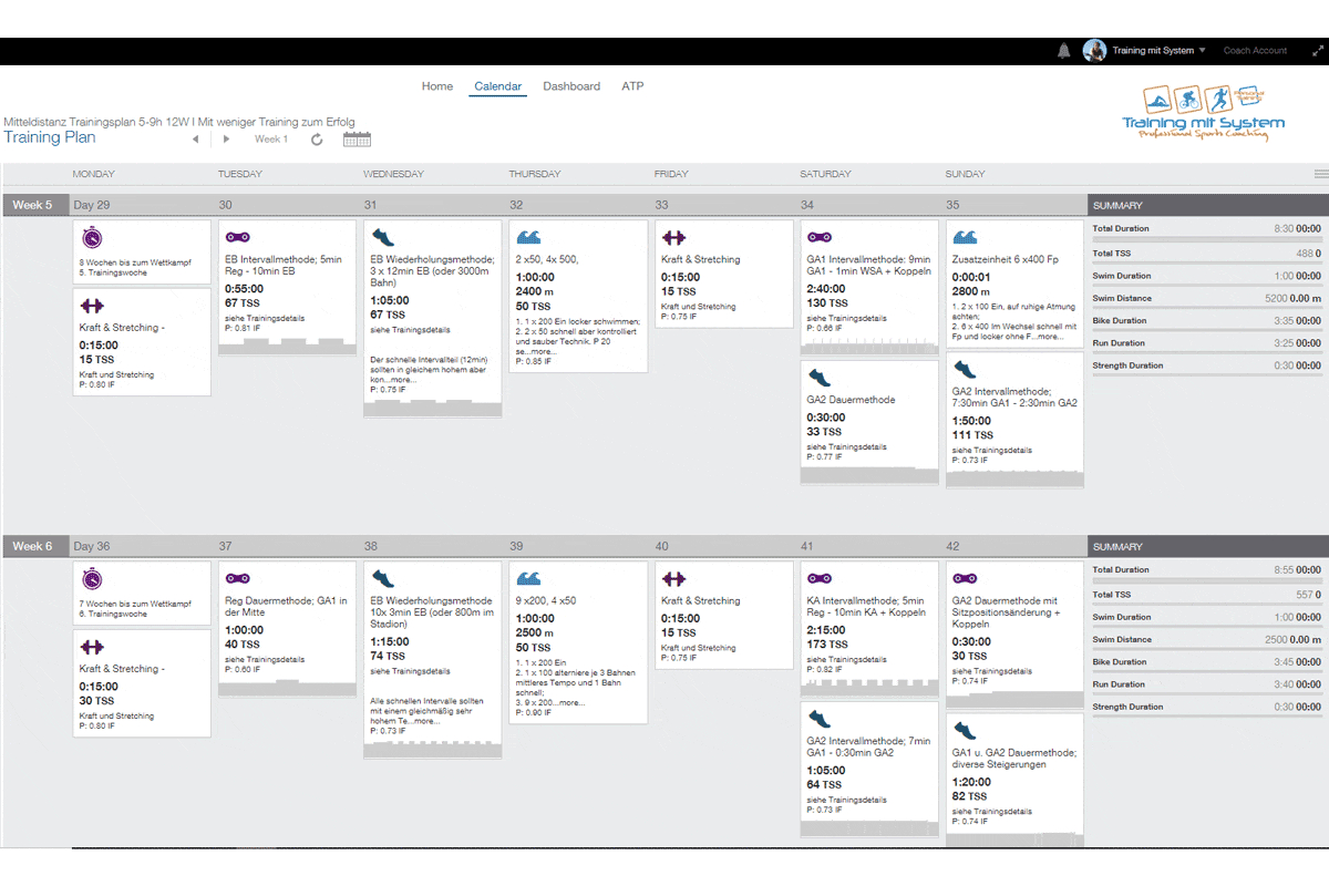 3. Wir stellen Dir eine Woche Deines Wunschtrainingsplanes im Kalender von TrainingPeaks zur Verfügung und Du kannst diesen einsehen, trainieren und uns Fragen stellen.